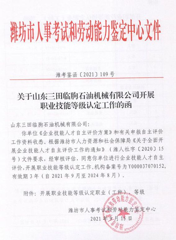 公司是山東省機(jī)械工業(yè)十大自主創(chuàng)新品牌企業(yè)、山東省重合同守信用企業(yè)、省級(jí)文明單位。于1997年取得并保持ISO9001質(zhì)量管理體系和ISO10012計(jì)量保證確認(rèn)證書(shū),2010年獲得并保持API Spec 4F、7K 美國(guó)石油學(xué)會(huì)認(rèn)證證書(shū),2016年取的OSHS18001健康安全管理體系認(rèn)證、ISO14001環(huán)境管理體系認(rèn)證和Q/SHS0001.1、Q/SY1002.1 HSE管理體系認(rèn)證,具有完善的對(duì)外貿(mào)易進(jìn)出口資質(zhì),在國(guó)內(nèi)市場(chǎng)設(shè)立完善的市場(chǎng)銷(xiāo)售和服務(wù)體系。