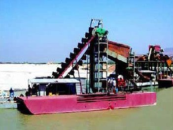 鐵沙船,即采掘沙石、沙礦、選礦機(jī)械設(shè)備,配有挖掘、抽吸、篩選、提升、傳送、磁選等設(shè)備。適用于河道、湖泊、海灘等清淤、選礦作業(yè)。
