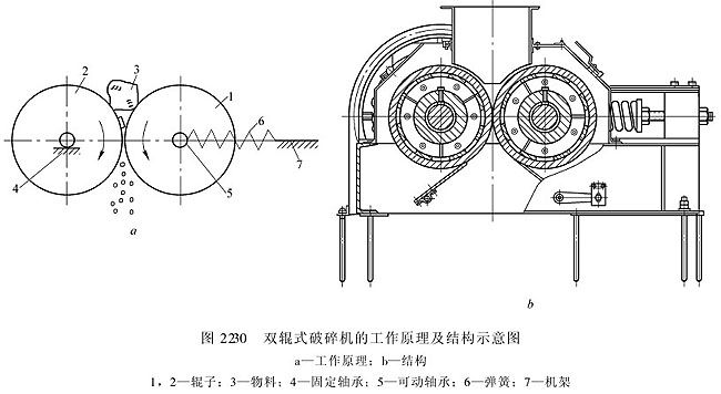 (8)采用液壓或彈簧自動退讓裝置和雜物清除裝置,能有效地防止非硬質(zhì)物料對齒輥的破壞。