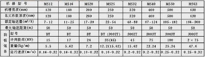 一、MS型埋刮板輸送機主要技術(shù)參數(shù):