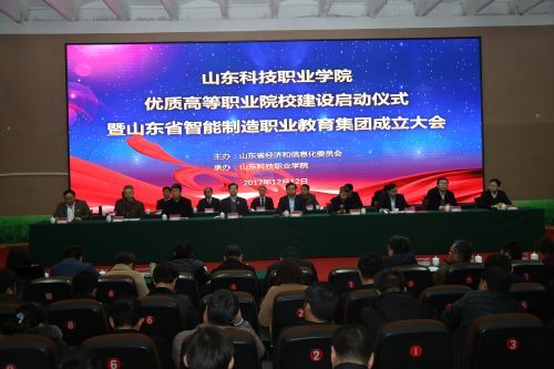 2017年12月12日上午,由山東省經(jīng)信委主辦的山東科技職業(yè)學(xué)院優(yōu)質(zhì)高等職業(yè)院校建設(shè)啟動(dòng)儀式暨山東省智能制造職業(yè)教育集團(tuán)成立大會(huì)在該學(xué)院工業(yè)中心報(bào)告廳舉行。山東省教育廳副廳長王坦,山東省經(jīng)信委副主任王信,省財(cái)政廳、濰坊市政府、濰城區(qū)委區(qū)政府領(lǐng)導(dǎo)出席大會(huì)并講話。全省行業(yè)協(xié)會(huì)、骨干企業(yè)、院校等200余家單位參加。