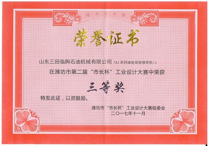 由三田機(jī)械技術(shù)中心獨(dú)立設(shè)計(jì)的“XJ系列油電雙驅(qū)修井機(jī)”,經(jīng)過(guò)大賽組委會(huì)嚴(yán)格的初評(píng)、復(fù)審和答辯,最終斬獲本屆工業(yè)設(shè)計(jì)大賽產(chǎn)品組三等獎(jiǎng)。今年這是公司連續(xù)兩年入圍該項(xiàng)設(shè)計(jì)大賽并獲獎(jiǎng)。