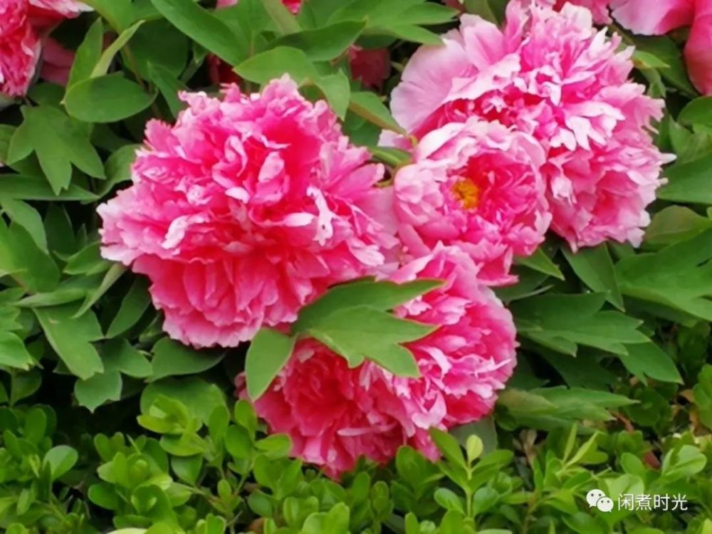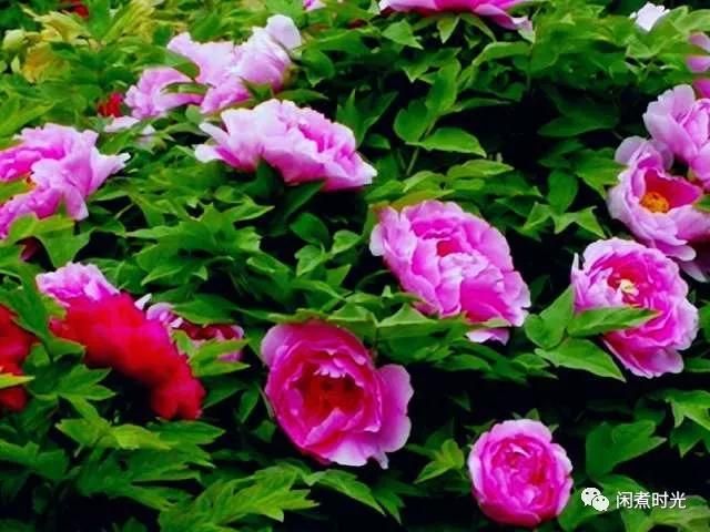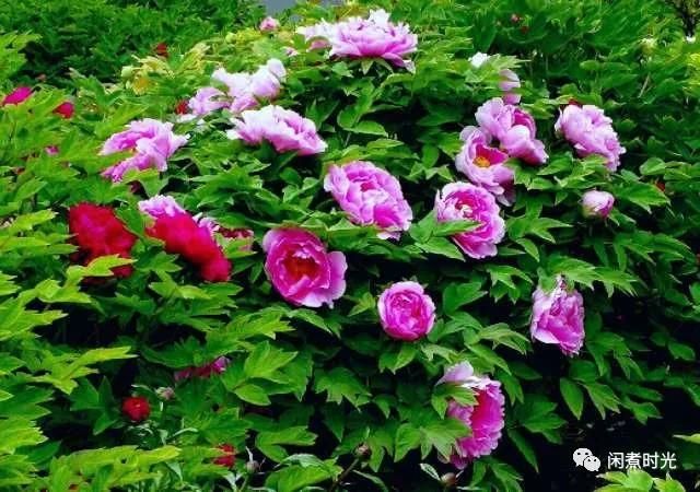進(jìn)得門來,只見通道北邊的花池內(nèi)姹紫嫣紅,繁花錦簇。人們都說牡丹花雍容華貴,國(guó)色天香,一點(diǎn)都不為過呀!