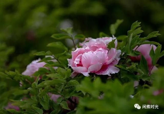 朵朵牡丹花,或昂立著,或半藏半露在葉子里,或淡雅,或嬌艷,在春風(fēng)里搖曳著,引來不少觀花人。我們正在賞花呢,走過一個(gè)中年師傅跟我們搭訕:“我們也覺得好看,可惜昨天的雨和風(fēng)給整得差個(gè)事了。”