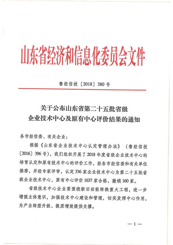 根據(jù)《山東省企業(yè)技術(shù)中心認(rèn)定管理辦法》(魯經(jīng)信技〔2016〕396號(hào)),山東省工業(yè)和信息化廳組織開展了2018年度省級(jí)企業(yè)技術(shù)中心的培育認(rèn)定和原有技術(shù)中心的評(píng)價(jià)工作,經(jīng)各市經(jīng)信委和有關(guān)單位推薦,并經(jīng)專家評(píng)審,認(rèn)定336家企業(yè)技術(shù)中心為第二十五批省級(jí)企業(yè)技術(shù)中心,原有中心評(píng)價(jià)1637家合格,撤銷160家。山東三田臨朐石油機(jī)械有限公司企業(yè)技術(shù)中心評(píng)價(jià)結(jié)果良好,通過(guò)山東省級(jí)企業(yè)技術(shù)中心評(píng)價(jià)。公司技術(shù)中心將圍繞新舊動(dòng)能轉(zhuǎn)換重大工程,進(jìn)一步增強(qiáng)主體意識(shí),加強(qiáng)技術(shù)中心建設(shè)和管理,切實(shí)發(fā)揮中心作用,為產(chǎn)業(yè)轉(zhuǎn)型升級(jí)、提質(zhì)增效提供支撐。