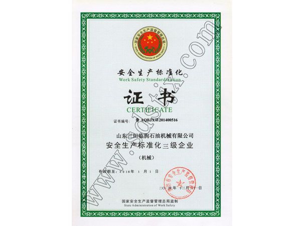 安全生產(chǎn)標(biāo)準(zhǔn)化證書