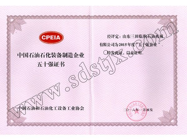 公司成功入圍中國石油石化裝備“五十強(qiáng)企業(yè)”和“名牌產(chǎn)品”