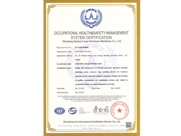 職業(yè)健康安全管理體系認(rèn)證證書(shū)